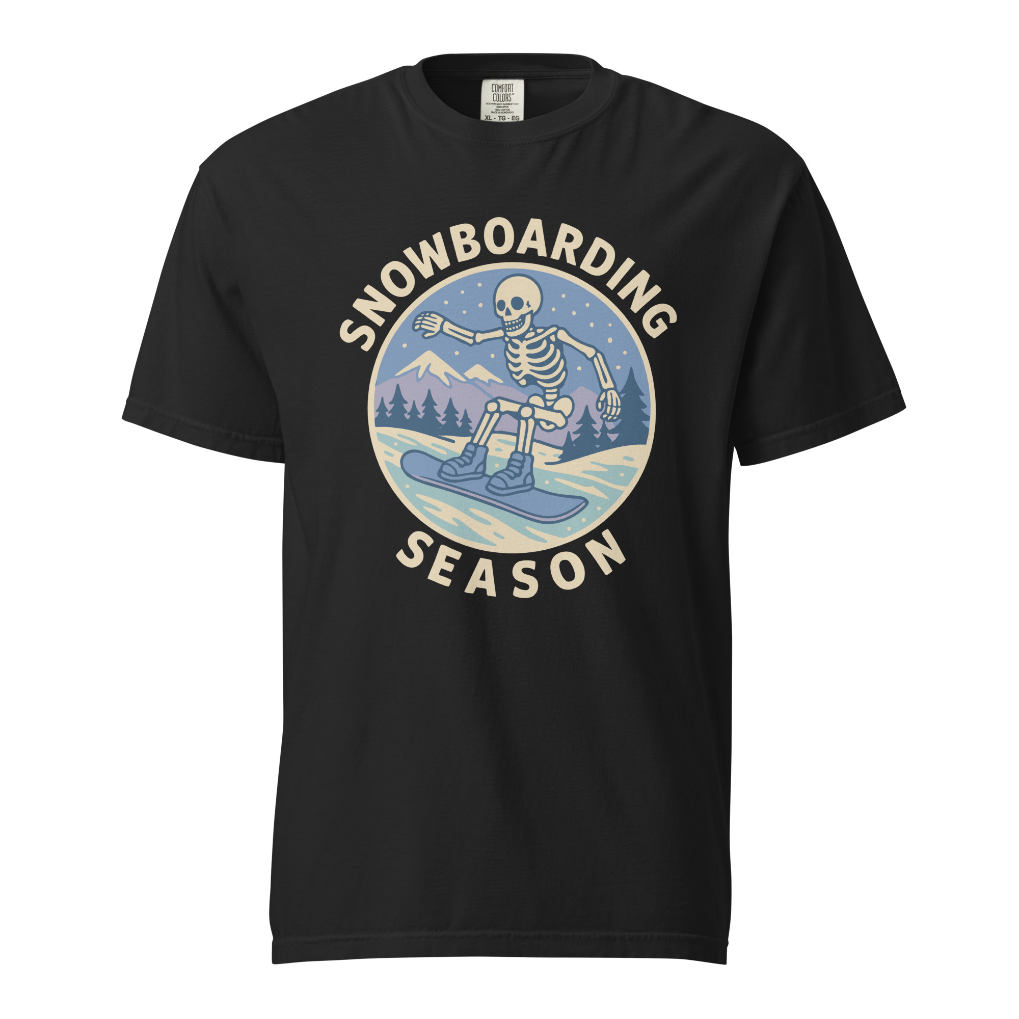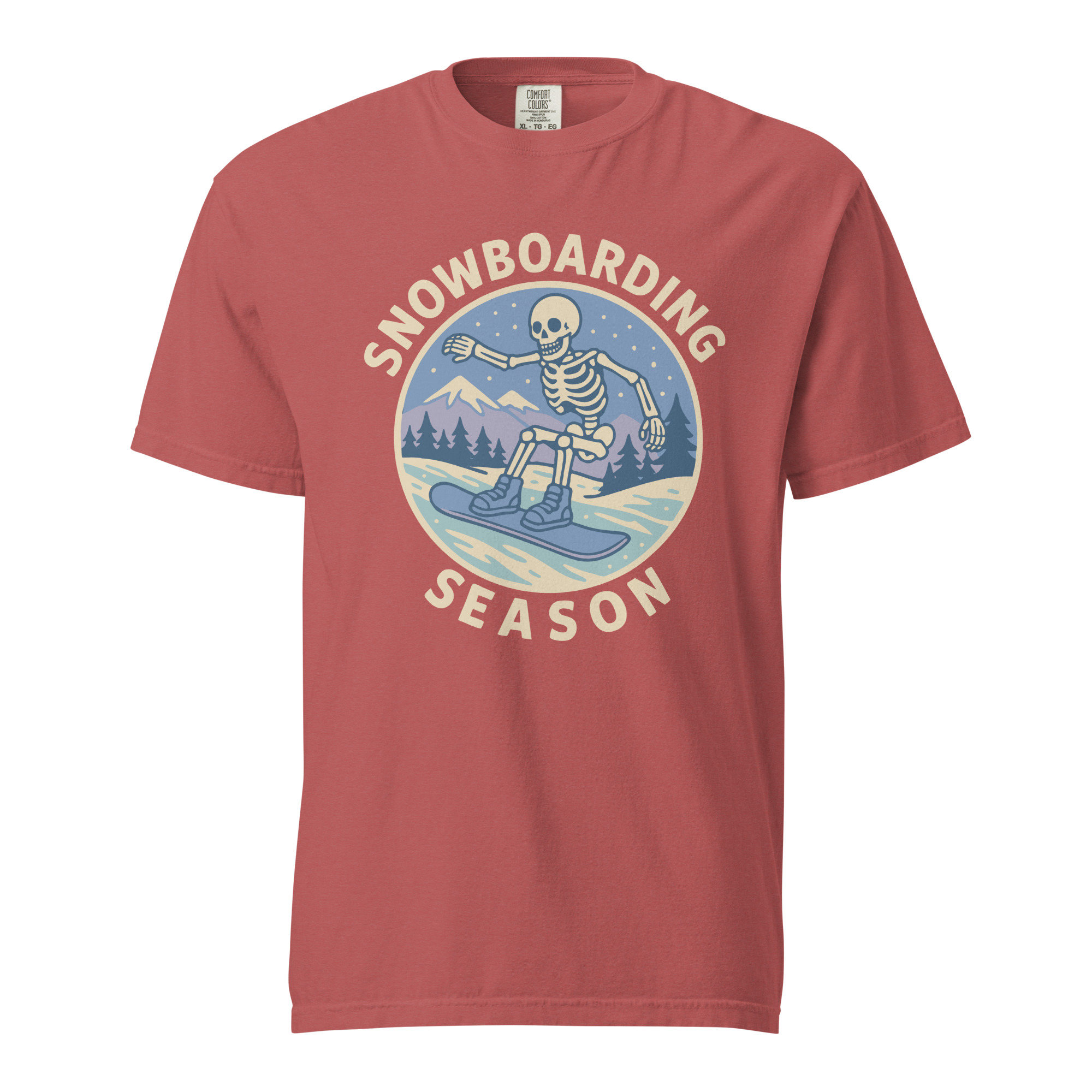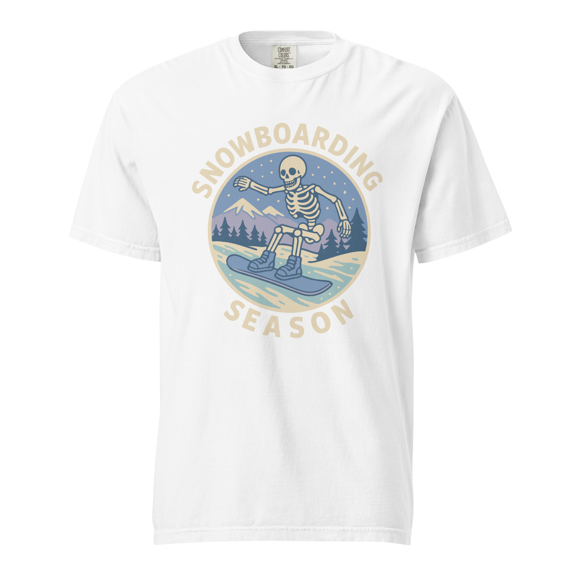 Embrace winter vibes with this soft Comfort Colors® tee featuring a retro mountain scene and bold snowboarding theme. Perfect for hitting the slopes or lounging après-ski, it combines laid-back comfort with eye-catching style.